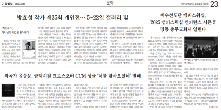 뮤직타임 [기사] ‘2025 캠퍼스워십 컨퍼런스 시즌 2’ 명동 충무교회서 열린다(기독일보)